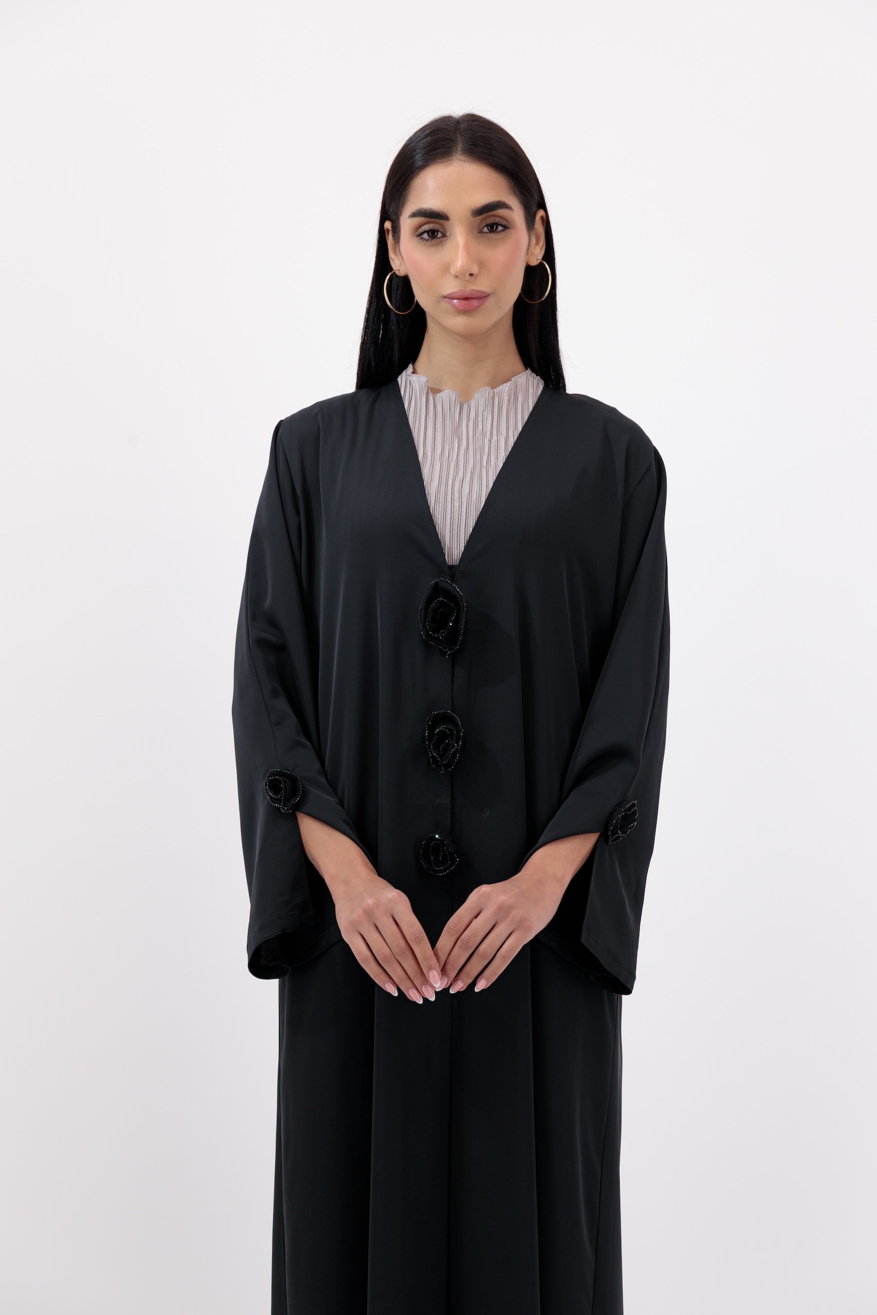 - Crepe abaya with deep v neck